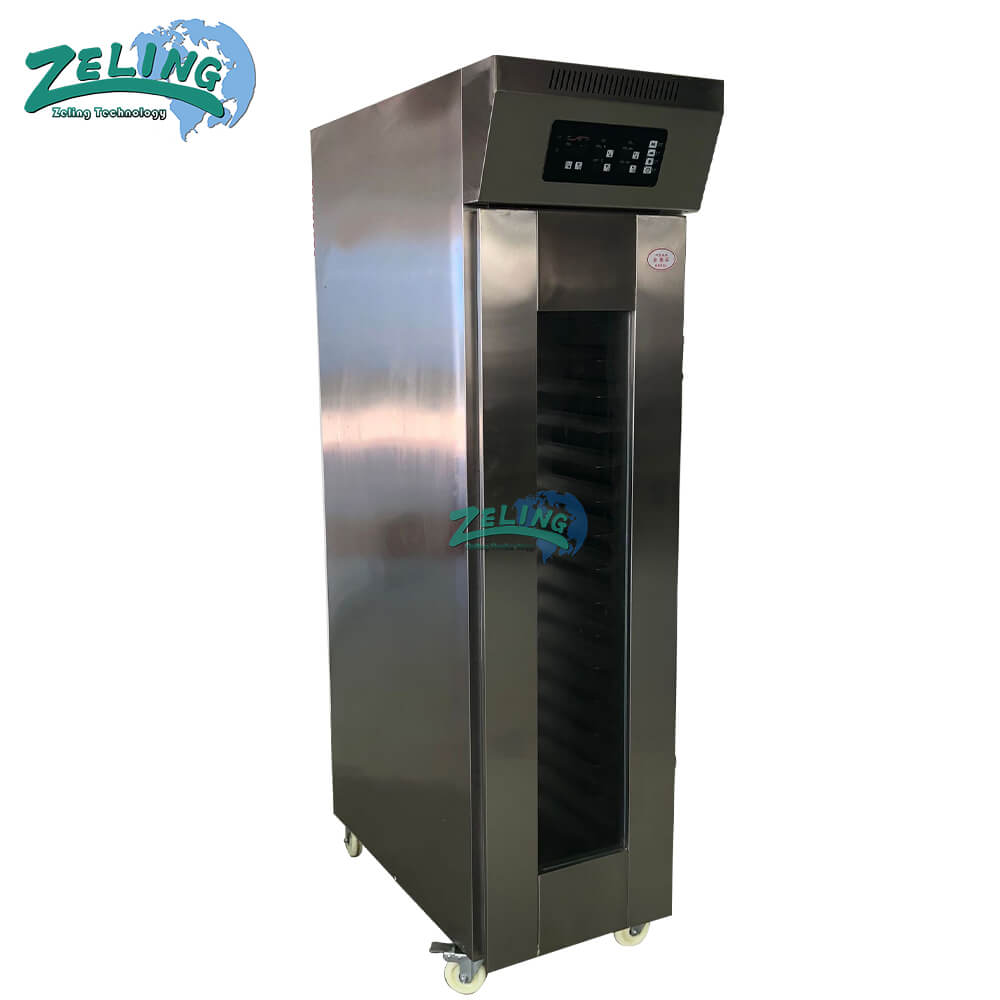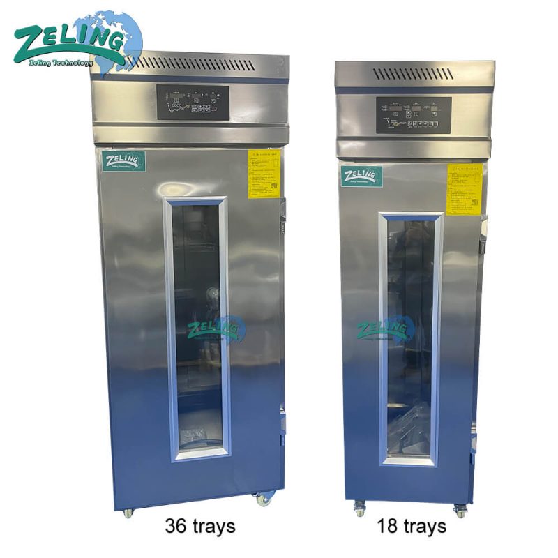 The dough refrigerating and fermenting machine is able to refrigerate the dough and keep the dough in low temperature with the function of 24 hours timing. Set the time, when it goes to the clocked time, the dough will be fermented automatically. No need to worry the dough will be gone off. The refrigerating temperature is adjustable.