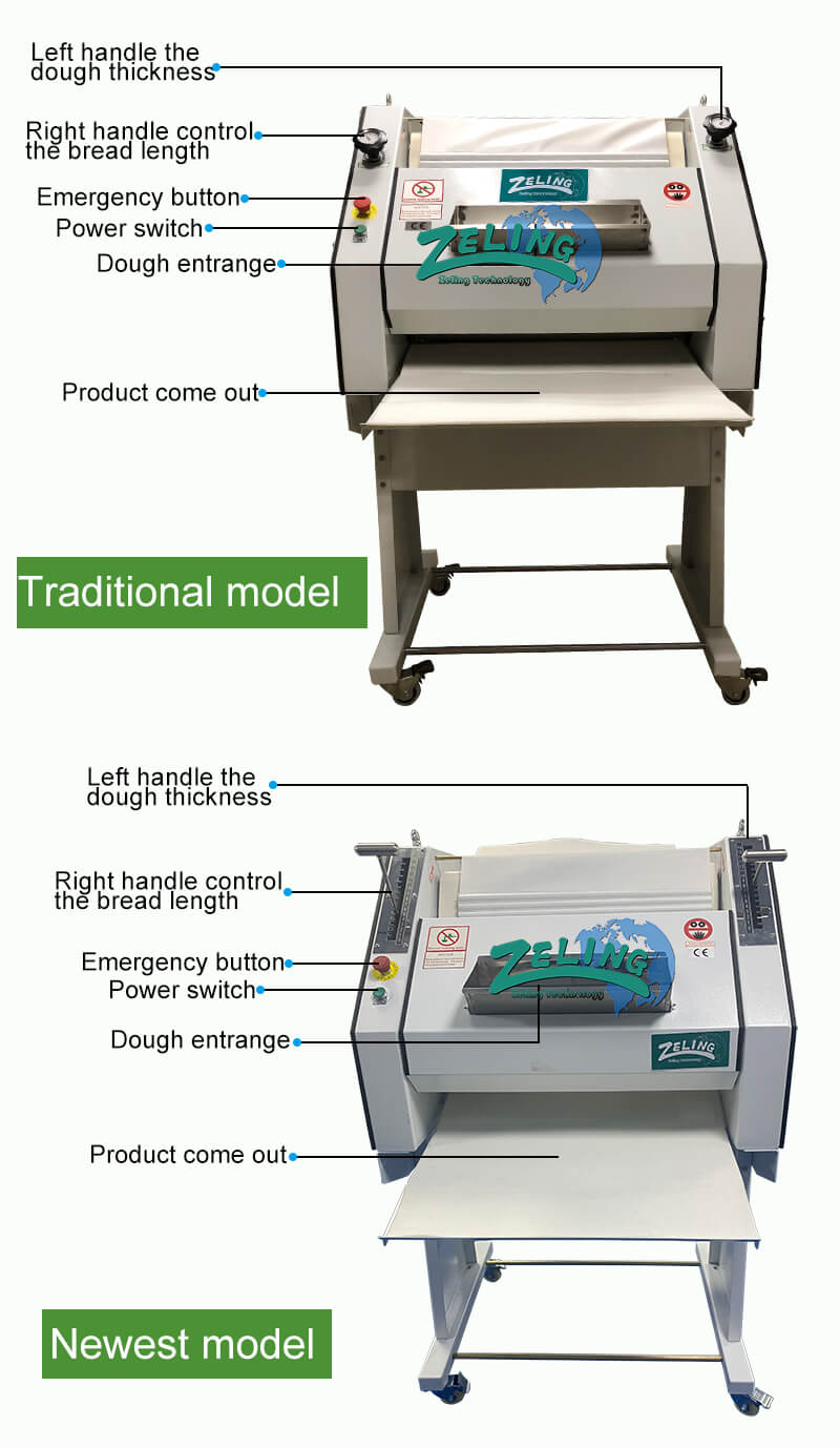 Baguette moulder could moulding french long bread in a few seconds, product diameter and length are adjustable by regulate the regulators. The machine can produce volumes layer and rub long bread rolls training for small bakeries produce baguettes and other long breads multi-function molding equipment. Suit for various bread roll production like bread,toast,baguette,hotdog etc.