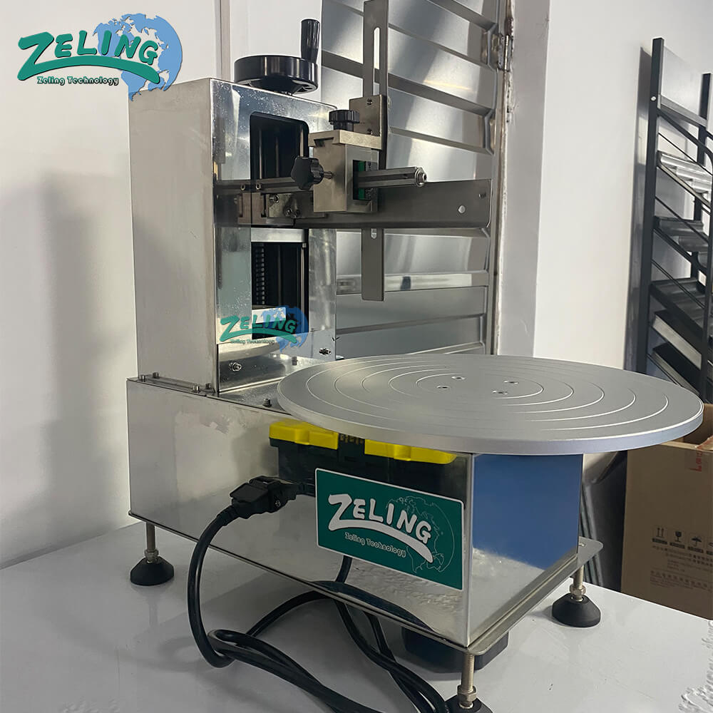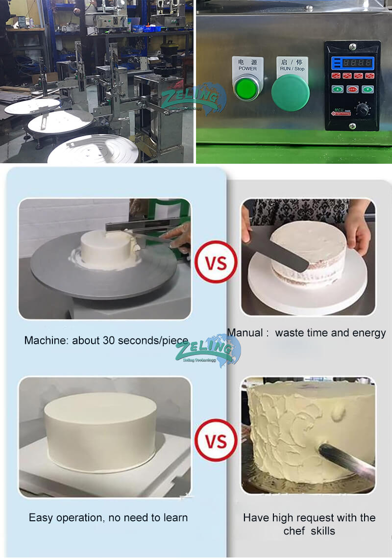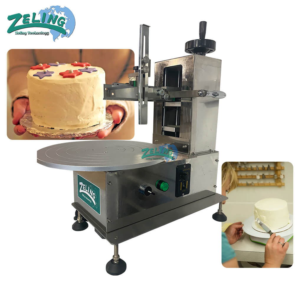 The cake decoratingn machine is specialized piece of bakery equipment designed to automate and standardize the process of applying and smoothing a uniform layer of icing, cream, buttercream, ganache, or other topping onto the surface of cakes.