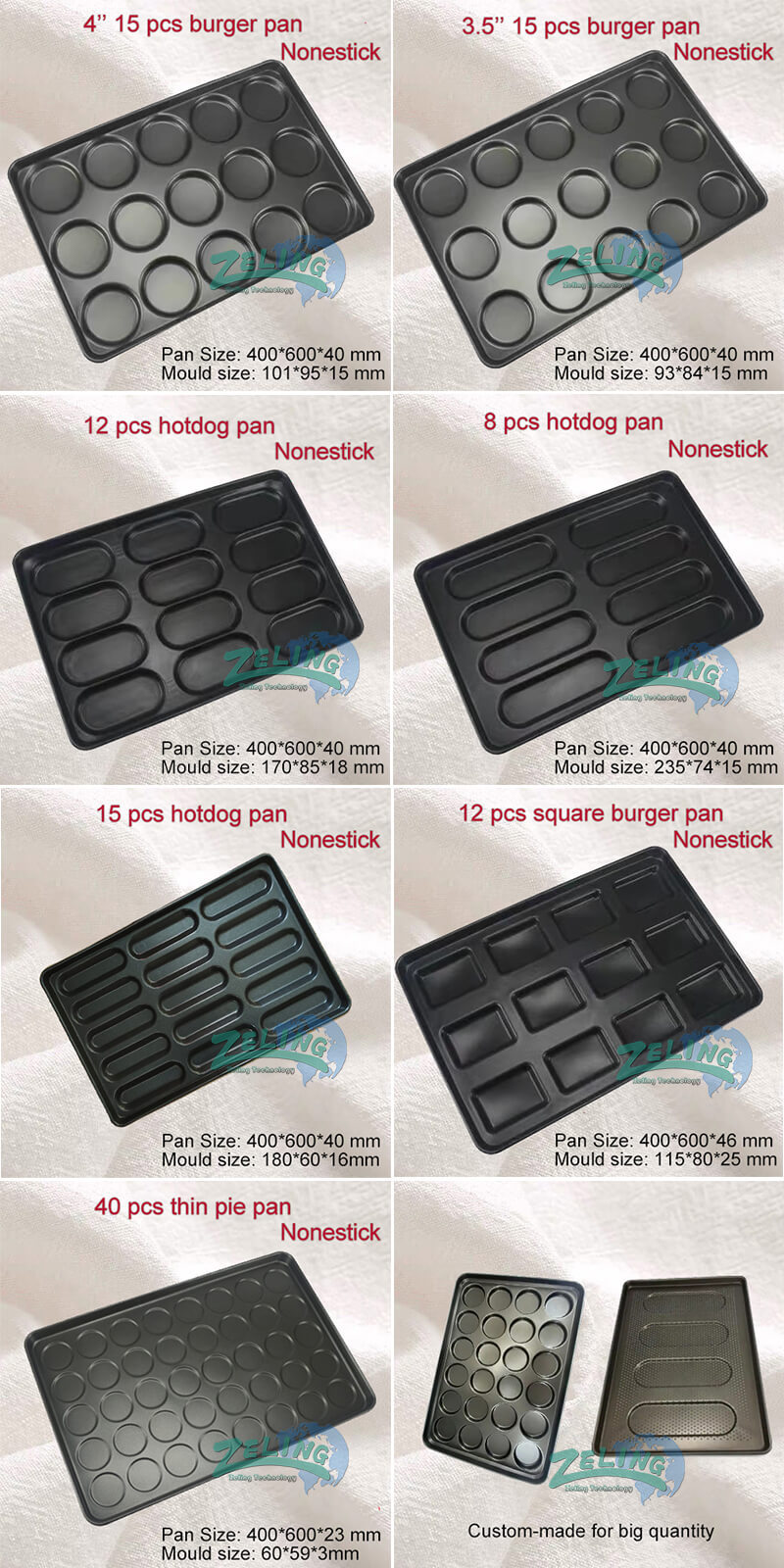 Other custom size is also available. It is usually with the nonstick coating in the surface, and it is must needed pan when you make burger pan.