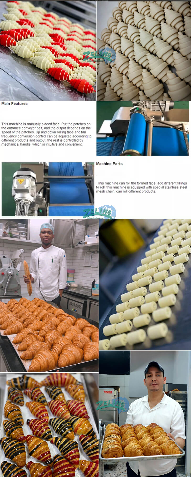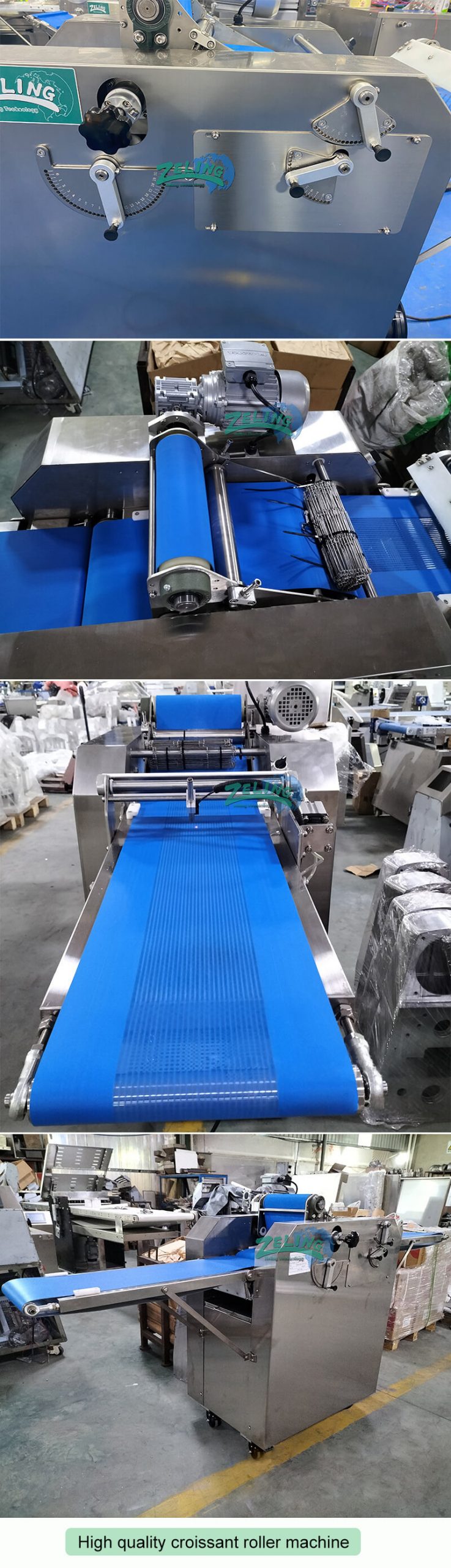 3. Equipped with rolling clearance adjustment mechanism, it can control the length and diameter of croissant .It also can adjust the compactness of croissant rolling.