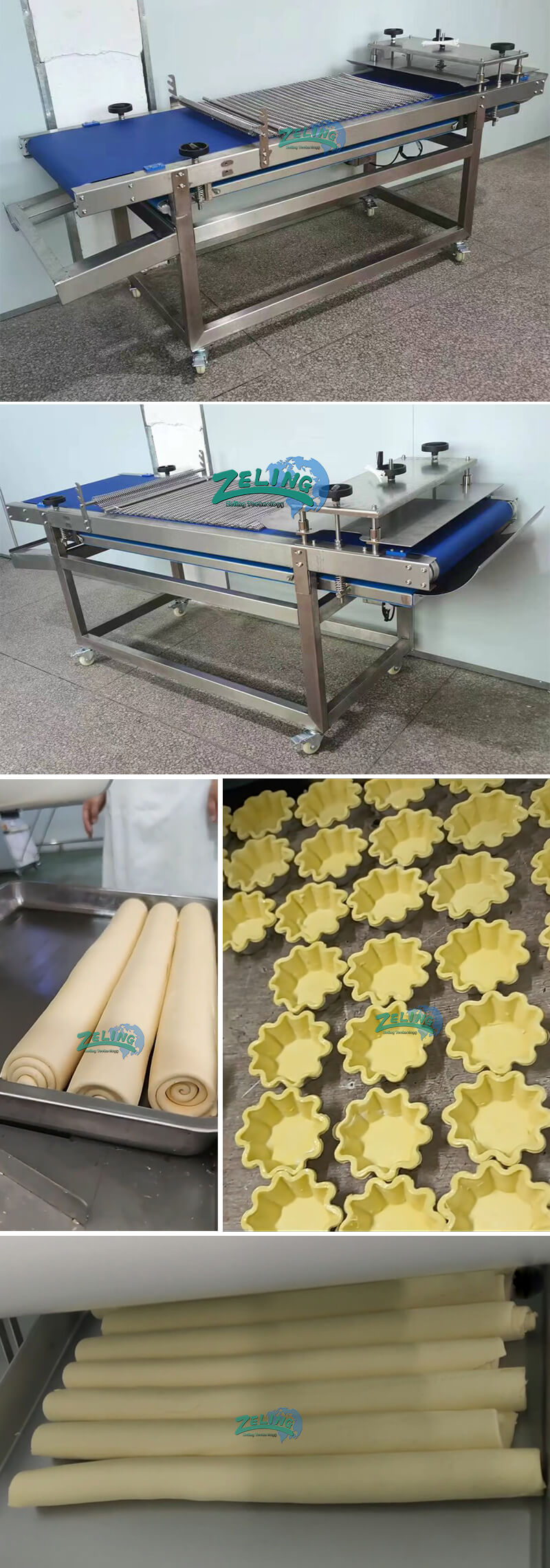 The Egg-tart Skin Stick Rolling Machine is an industrial-grade equipment designed to automate the precise rolling and shaping of tart dough into uniform cylindrical rolls or sheeted dough blocks, optimized for high-efficiency production of tart shells, pie crusts, and pastry bases. It streamlines the critical pre-forming stage, ensuring consistency in thickness, density, and dough structure for downstream molding processes.