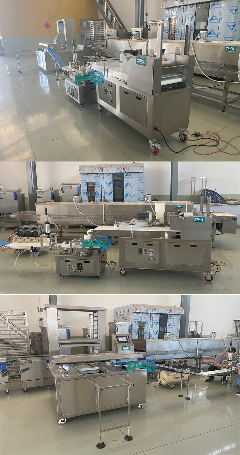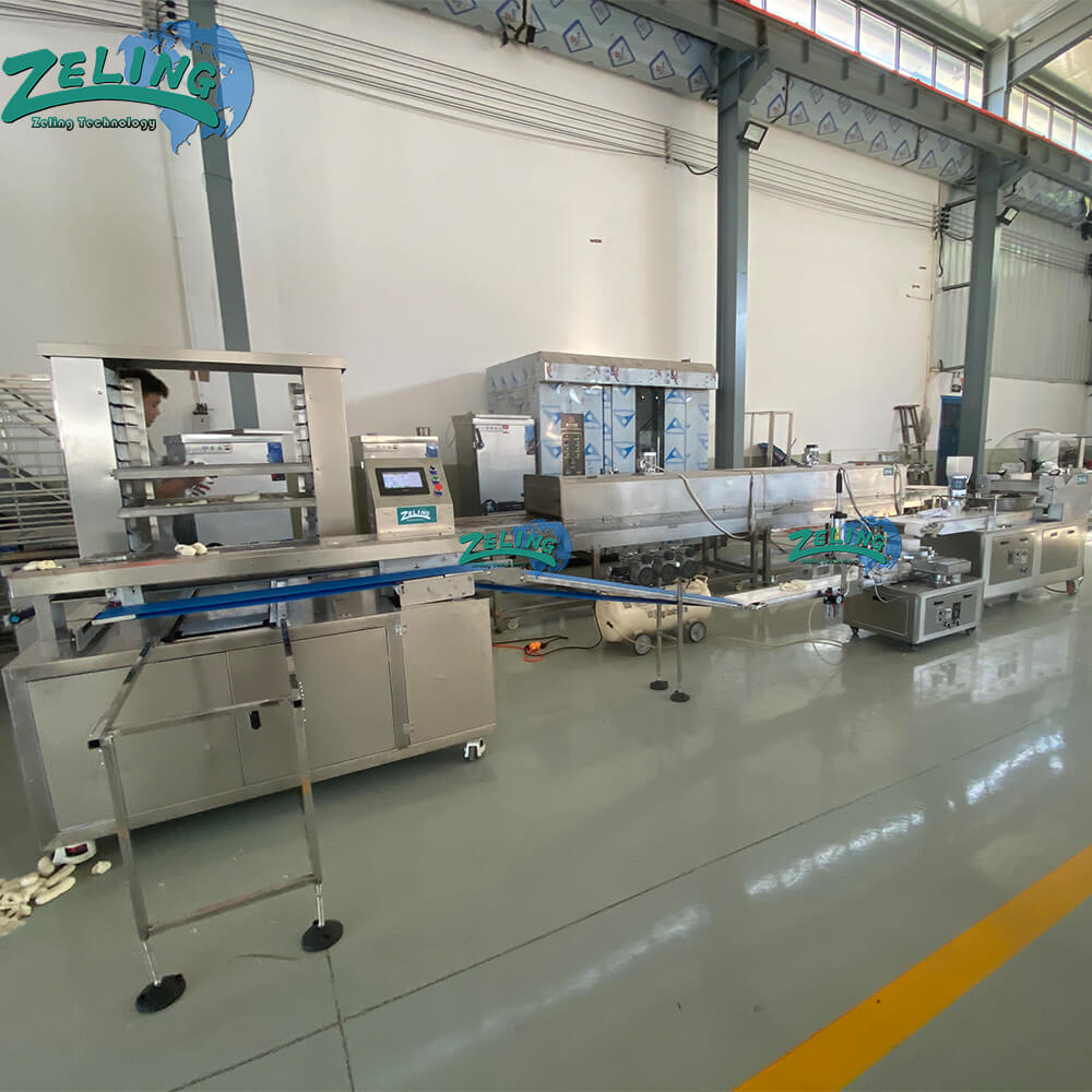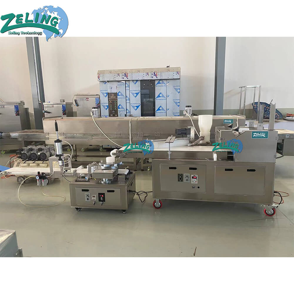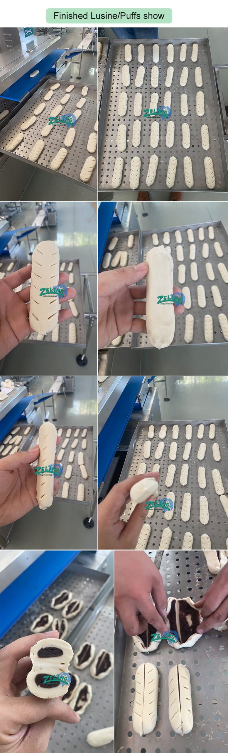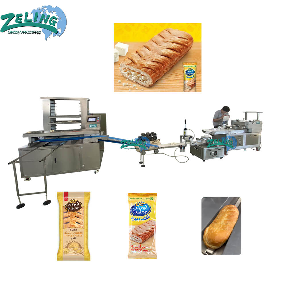 The automatic Lusine/puffs pie production line use for filling cheese filled-pie/ filling beef chheese filled-pie production from dough rolling ,adding filling, forming to droping the pies onto the pan.