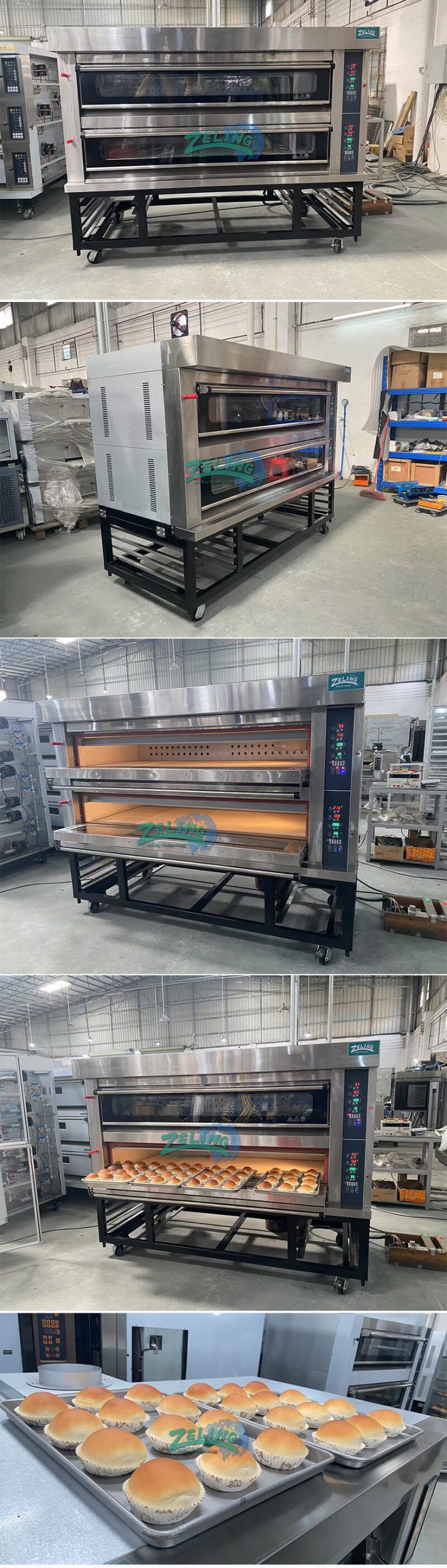 | ZL-H3/9G | 1880*1100*1840 | 800kg | 0.3 kw | 3 deck 9 trays | Gas |