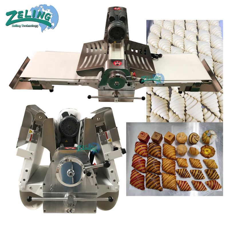 The mini tabletop dough sheeter is an electric, tabletop equipment designed specifically for puff pastry processes and croissant production.