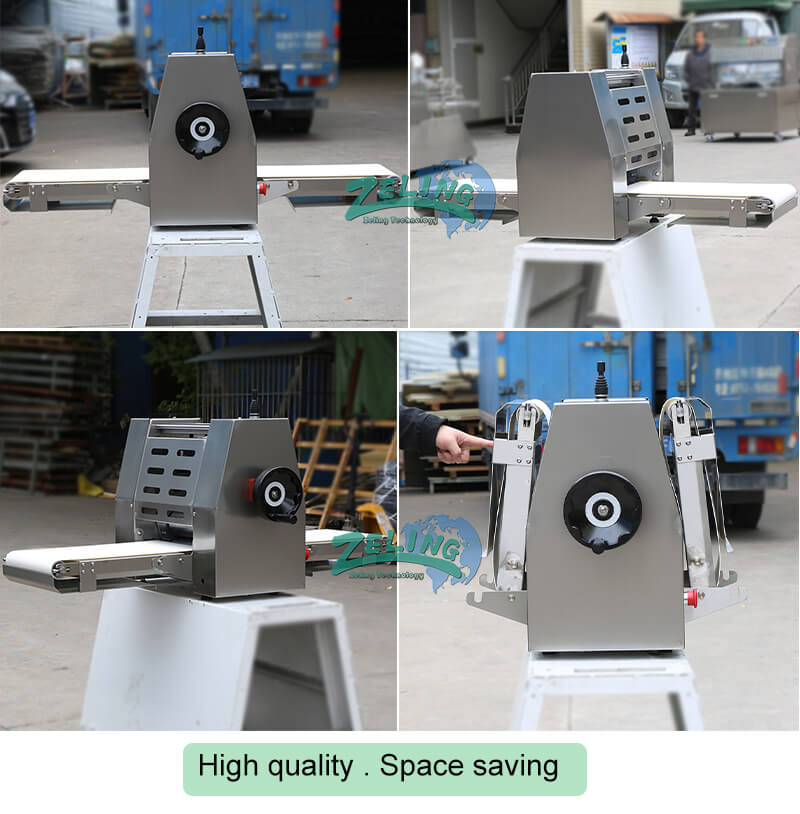 The mini tabletop dough sheeter is an electric, tabletop equipment designed specifically for puff pastry processes and croissant production.