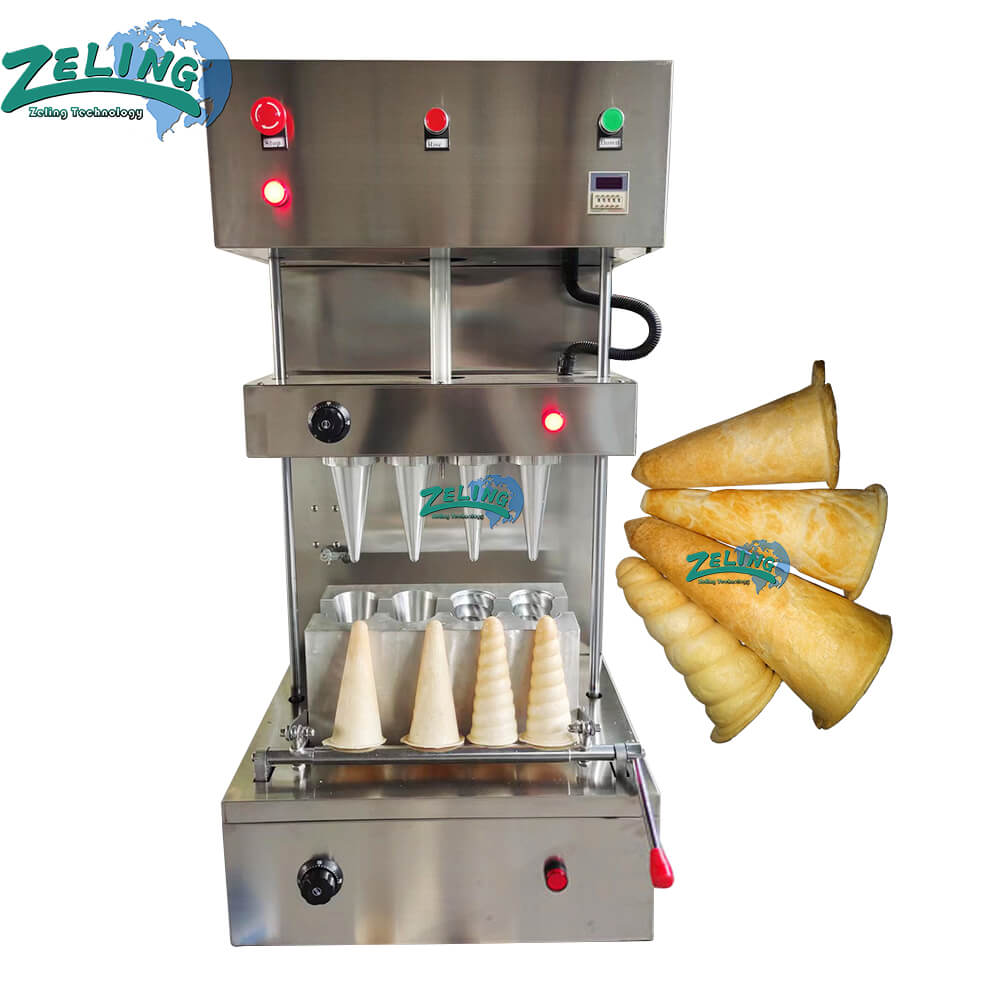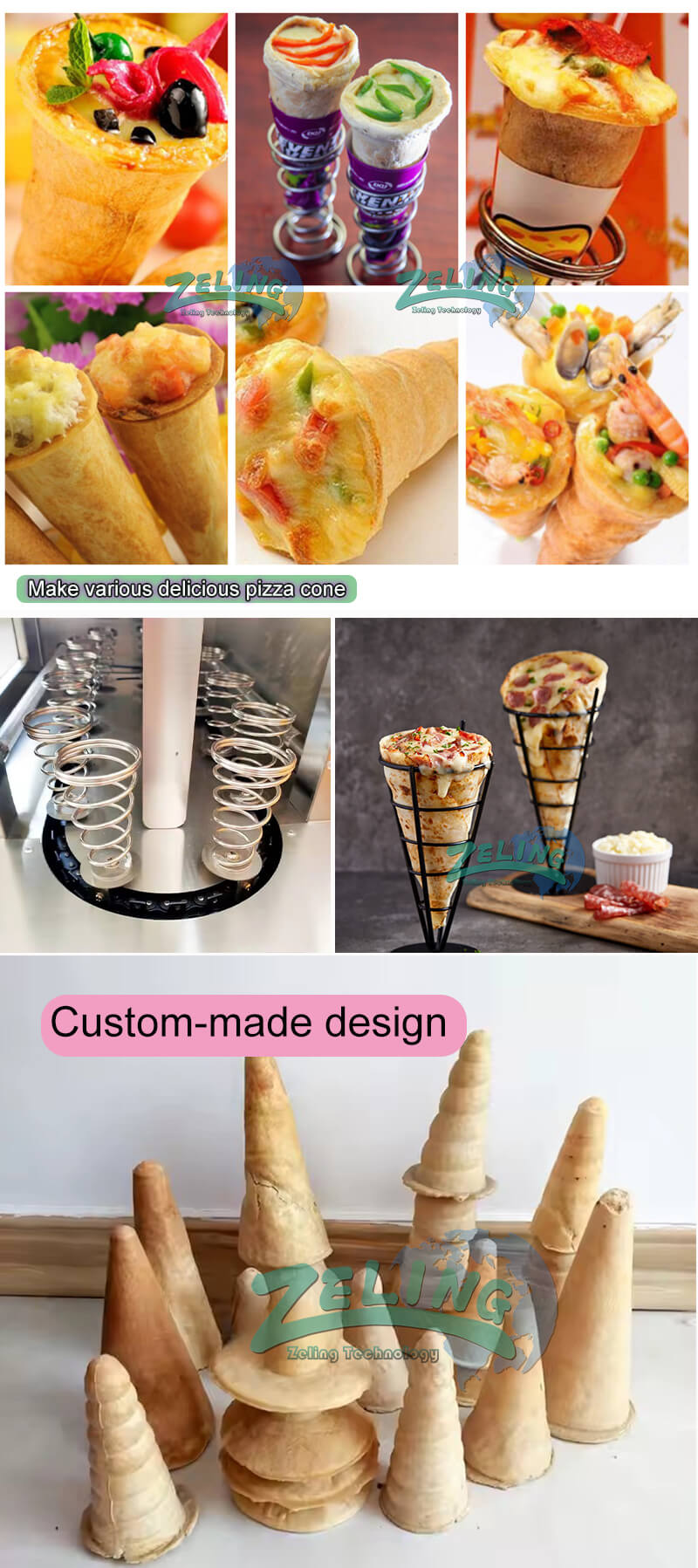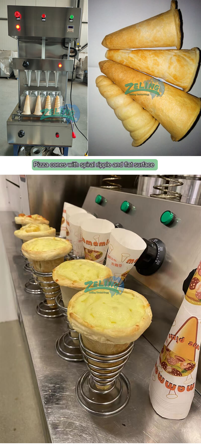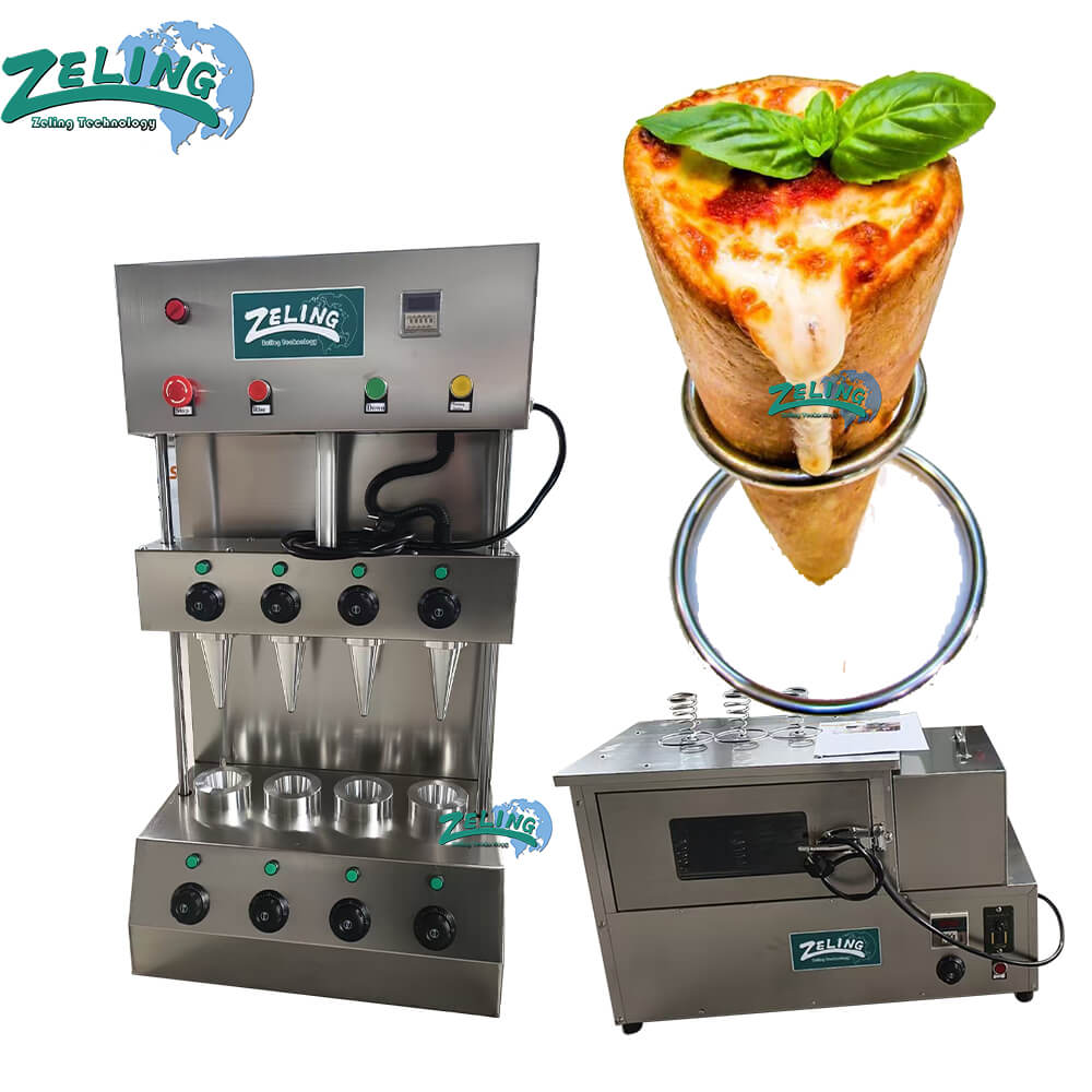 The Pizza Cone Machine is an innovative, specialized food service equipment designed to produce Pizza Cones—a novel and highly portable twist on traditional pizza. It bakes a cone-shaped crust, which is then filled with melted cheese, sauces, meats, and vegetables, creating a delicious, mess-free, handheld meal. This machine is engineered for high efficiency in commercial settings, enabling rapid production to meet customer demand.