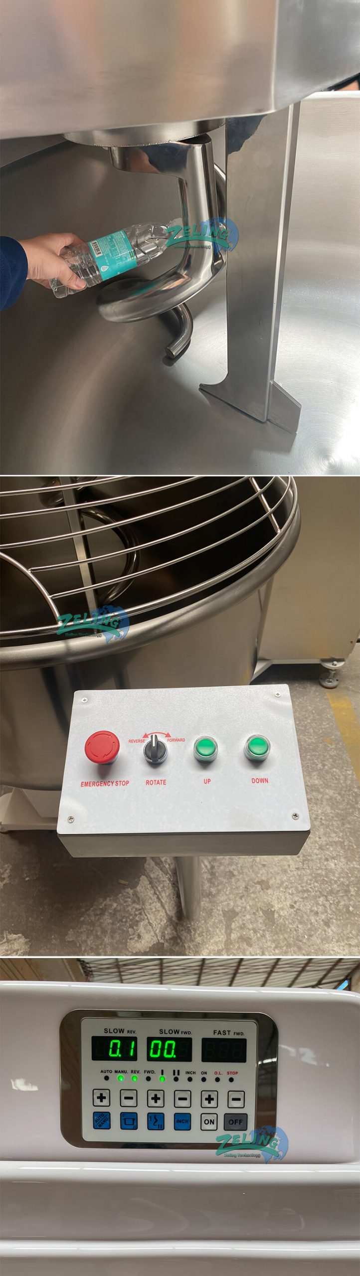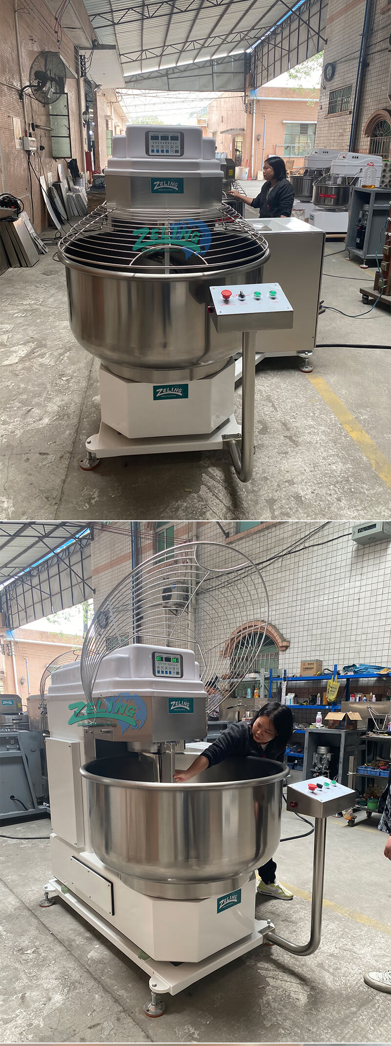 - The big bowl self-tipping spiral mixer enable you make very big dough one time, with the bowl lifting system, there is no need the workers get the dough out from the bowl by hand little by little.