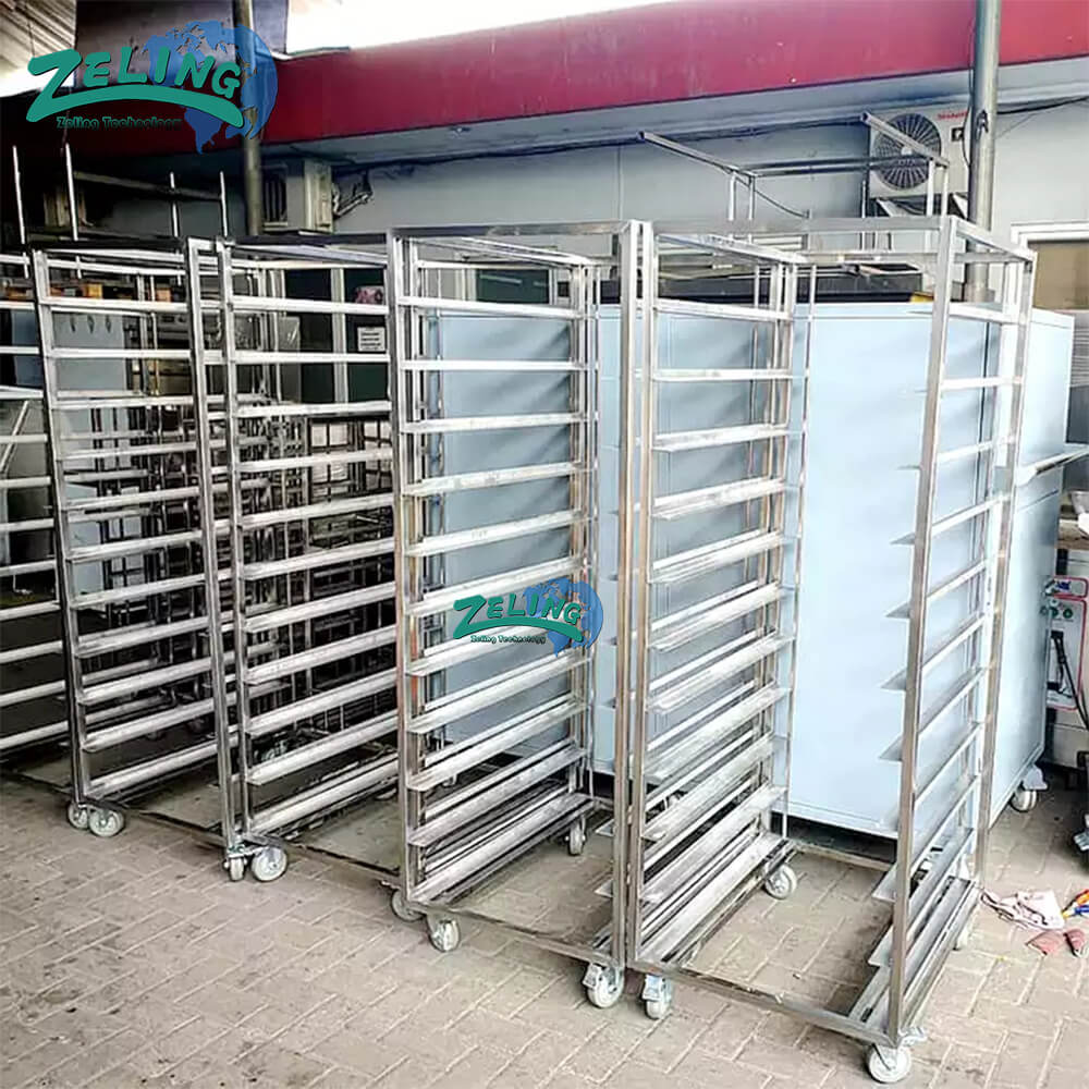 The  trolley can be 16 trays or 32 trays capacity, the size can make as your request. It is made of strong quality with universal wheel.