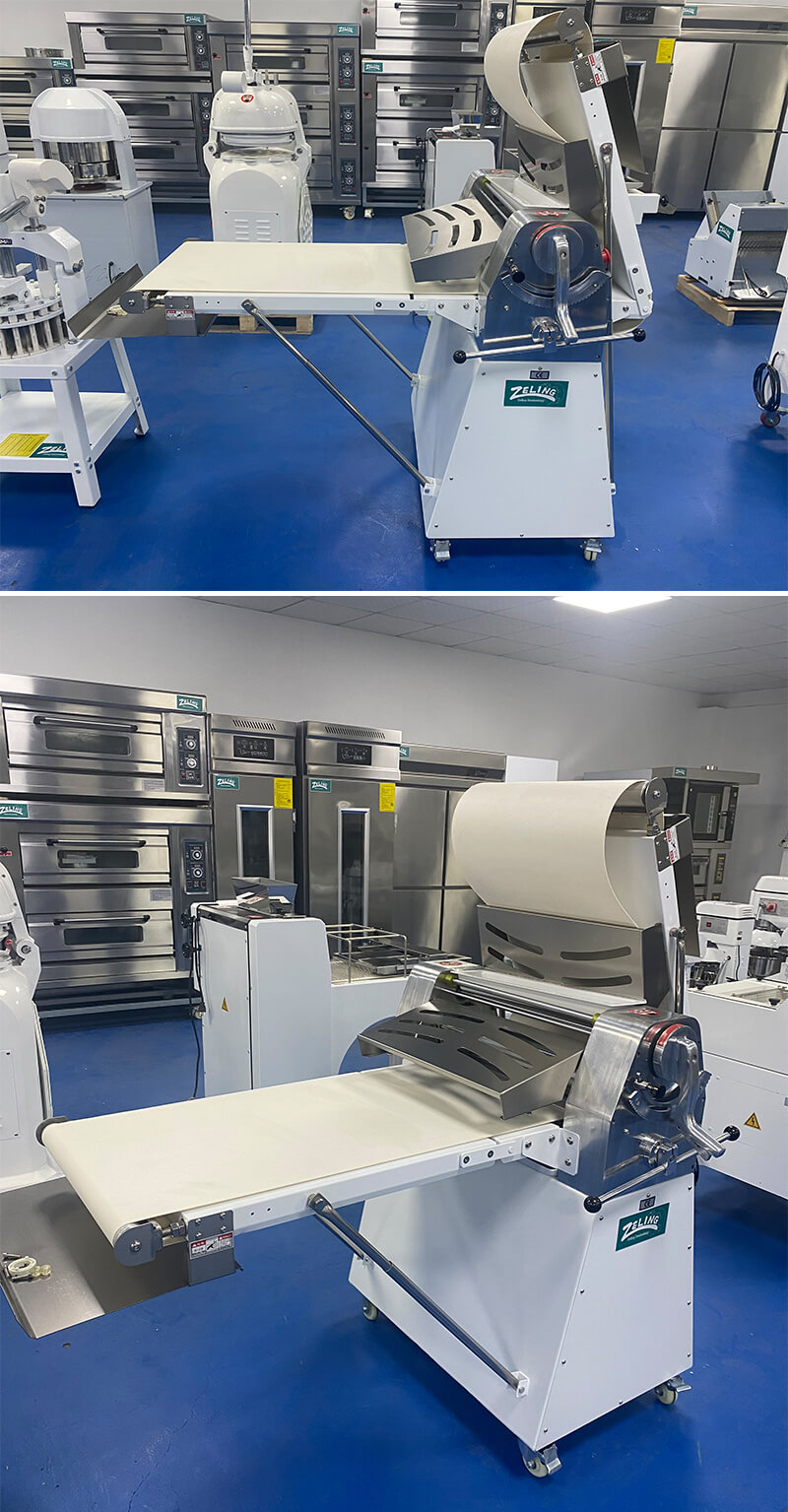 The dough sheeter suitable for crisp food and multi-layer food,such as croissant, puffed pastries, danish, flaky pastries, soft pasty dough and stiff pizza. It can also be used for rolling dough