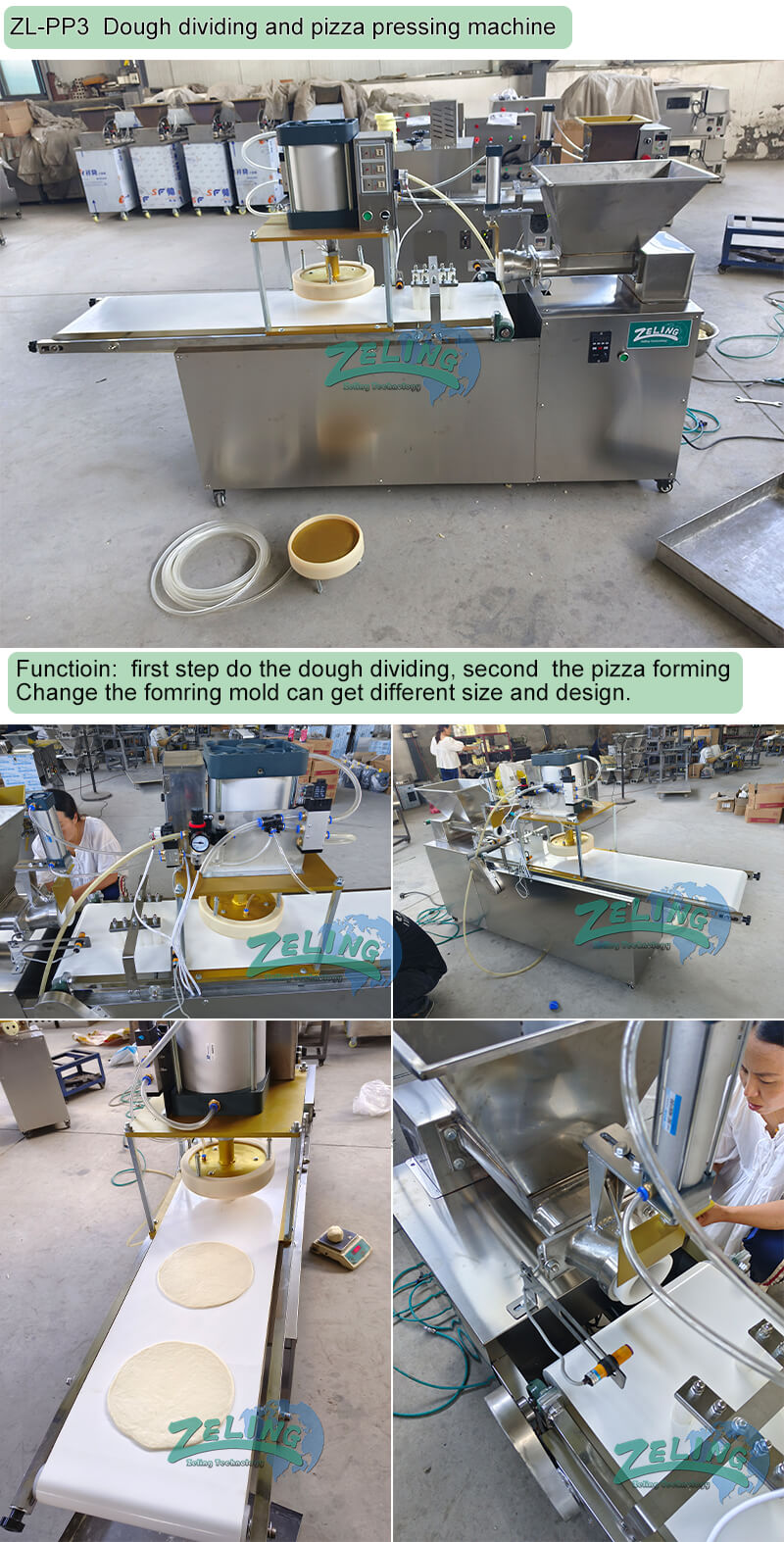 - The dividing and stamping model can do the dough dividing and stamping at the same time;