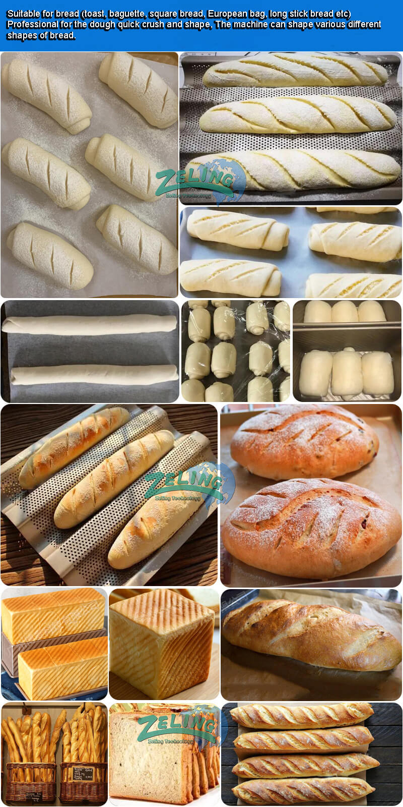 The automatic toast/ baguette production line use for continuous toast/ baguette production from dough mixing to droping the bread rolls onto the pan. It is full automatic and save lots labor, and higher efficiency with bigger output.