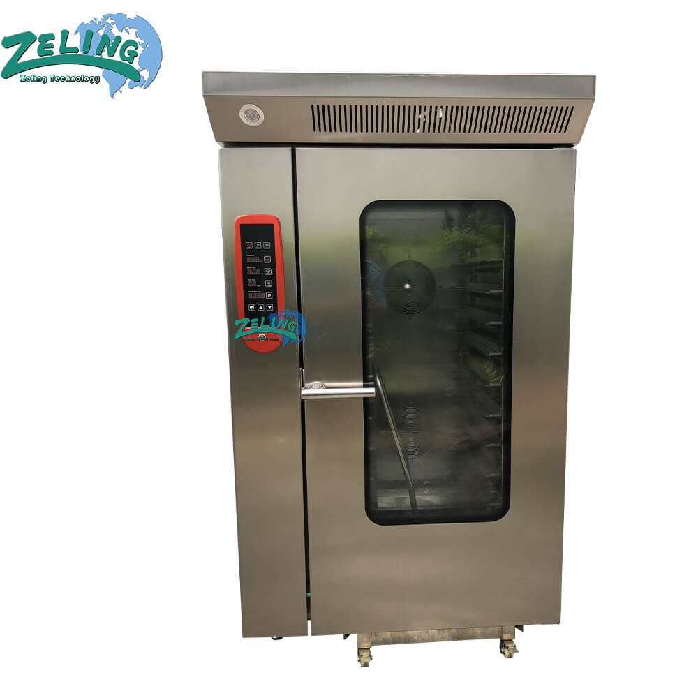 This oven is trolley model, you can push the trolley directly into the oven hearth and close the door to start bake. After finishing baking, you  can pull the whole trolley out directly. Compared with the traditional tray convection oven, this trolley -roll-in model oven is more convenient with bigger output.